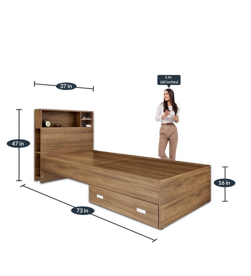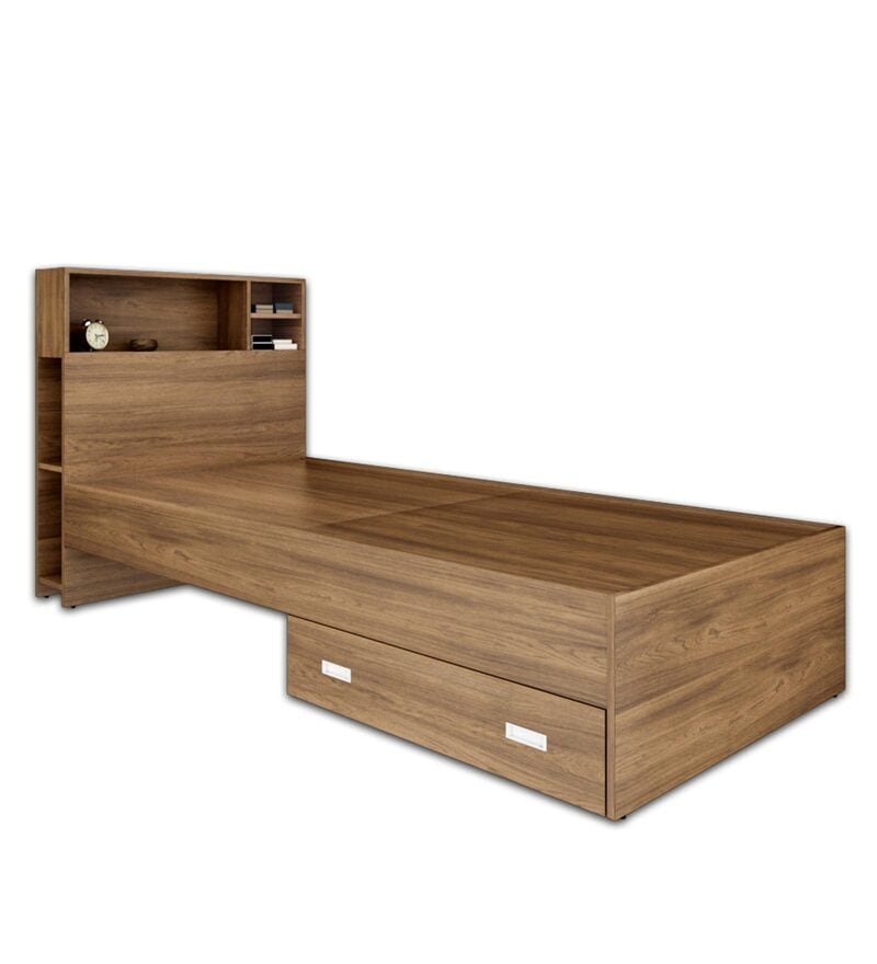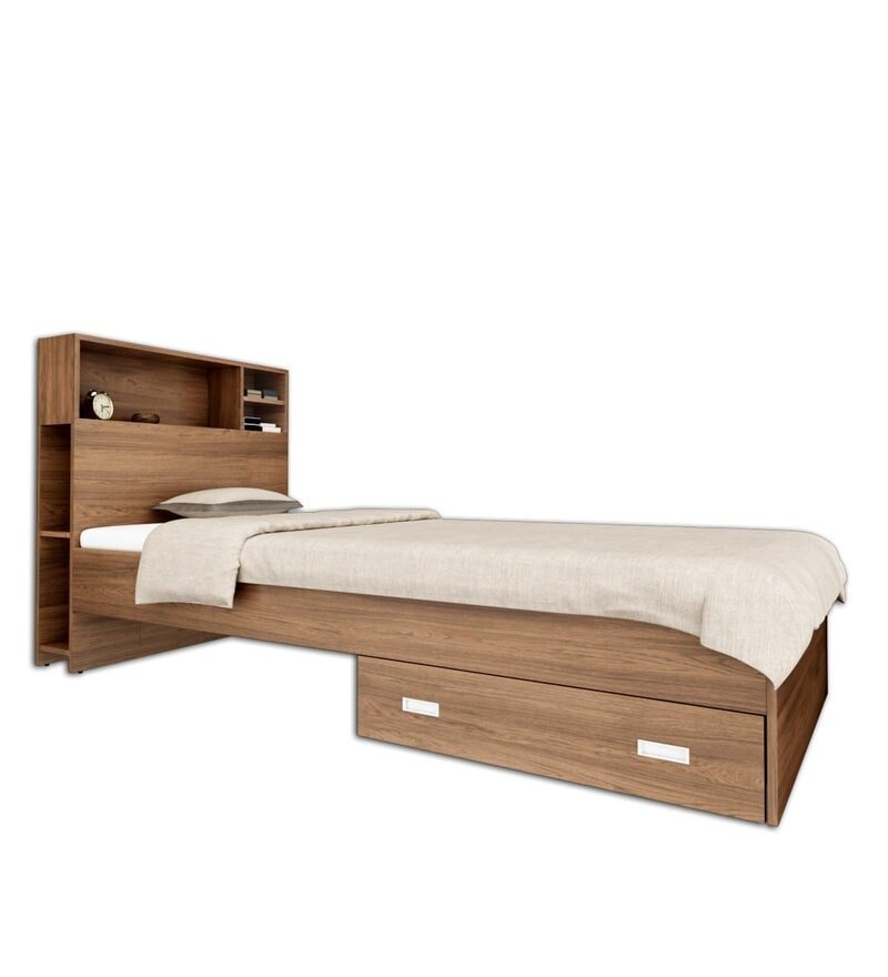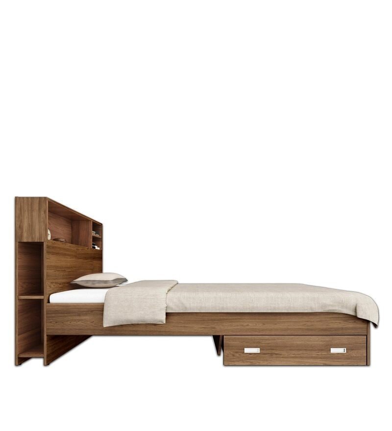 Boltera Single Bed With Headboard Storage & Drawer in Dark Walnut Finish